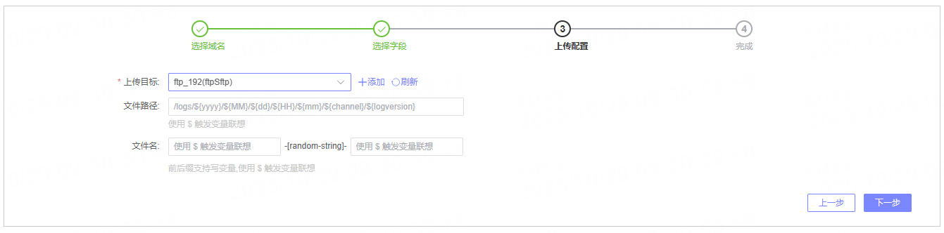 您可以配置目标域名(仅适用于平台原生数据)、选择日志字段、定义日志格式等参数,实现精确的数据投递。