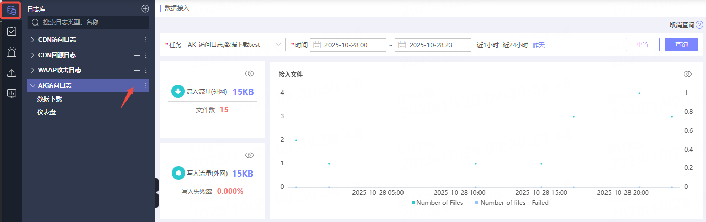 任务提交成功后,会自动跳转至日志库页面,可进行数据下载。