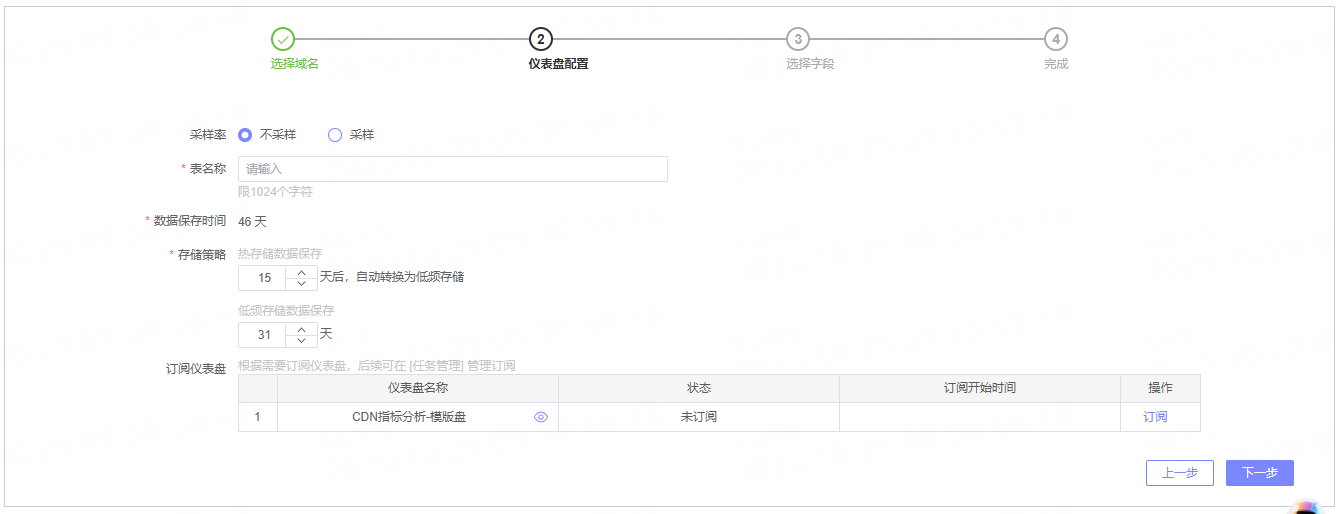 | 表名称 | 用于后续数据可视化分析,需指定存储表名称。 |