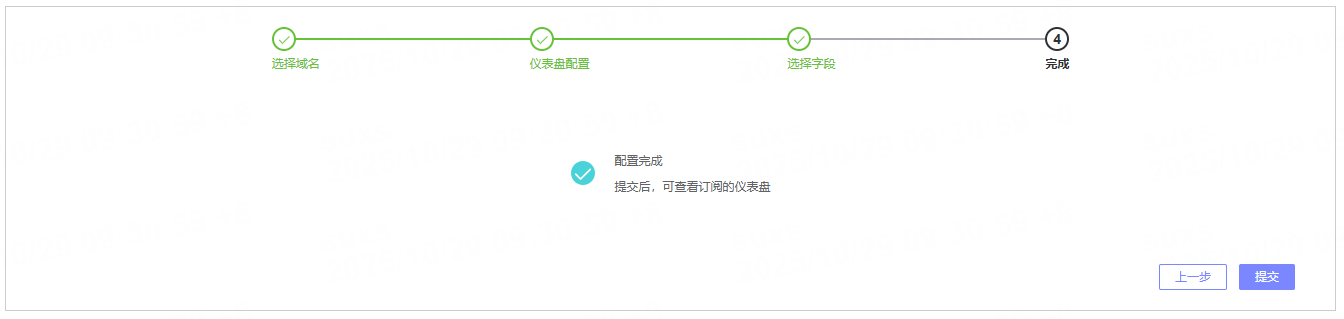 配置完成后,点击提交按钮,提交消费任务。任务提交后,将跳转至仪表盘页面,可查看已订阅的仪表盘,或新建仪表盘进行数据分析。