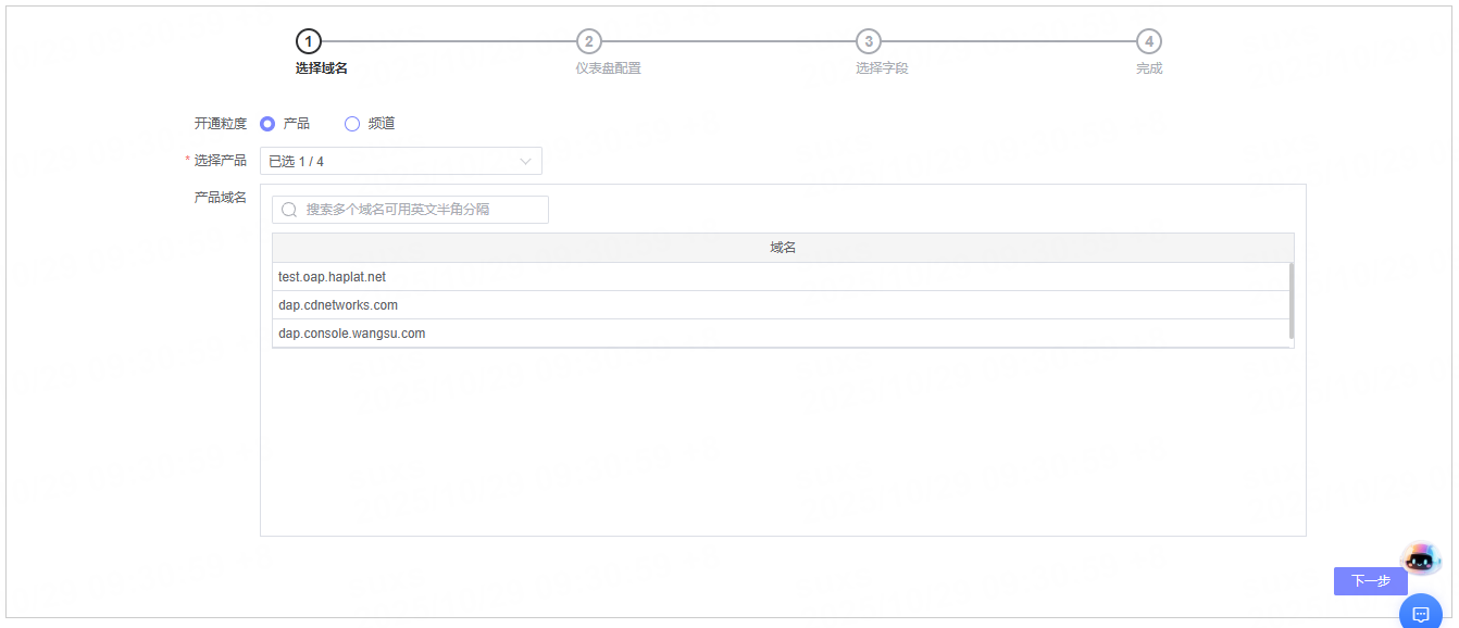 | 域名列表 | 展示所选产品下的全部域名或选择的域名。 |