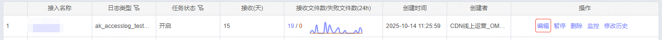 在接入任务管理的操作栏中,选择编辑操作。