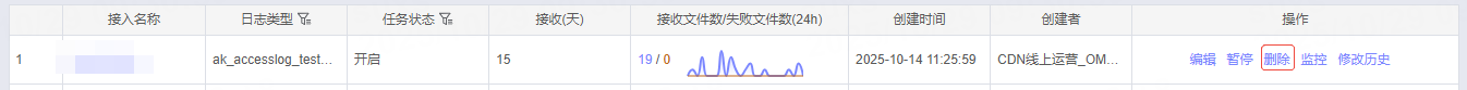 在接入任务管理的操作栏中,选择删除操作。