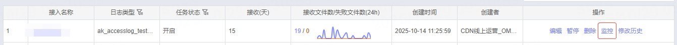 在接入任务管理的操作栏中,选择监控操作。