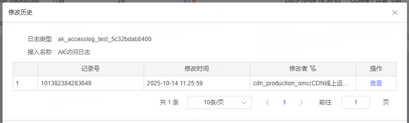 点击后,可在弹窗中查看该接入任务的历史修改情况,及查看每一次的修改详情。