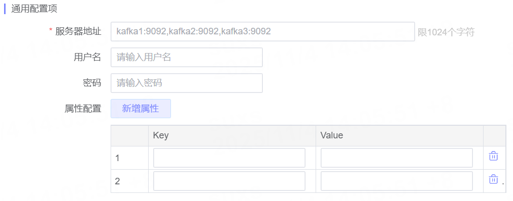 在上传目标类型中选择Kafka。