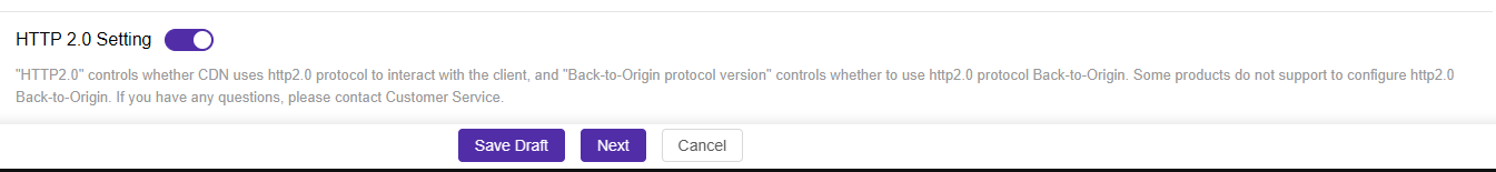 图标启用(默认关闭)。启用后,即可支持CDN节点使用HTTP/2协议与客户端交互。