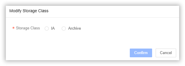 您可以通过converttype接口,将文件转换为指定的存储类型。有关接口调用方式的更多信息,请参考存储类型转换。