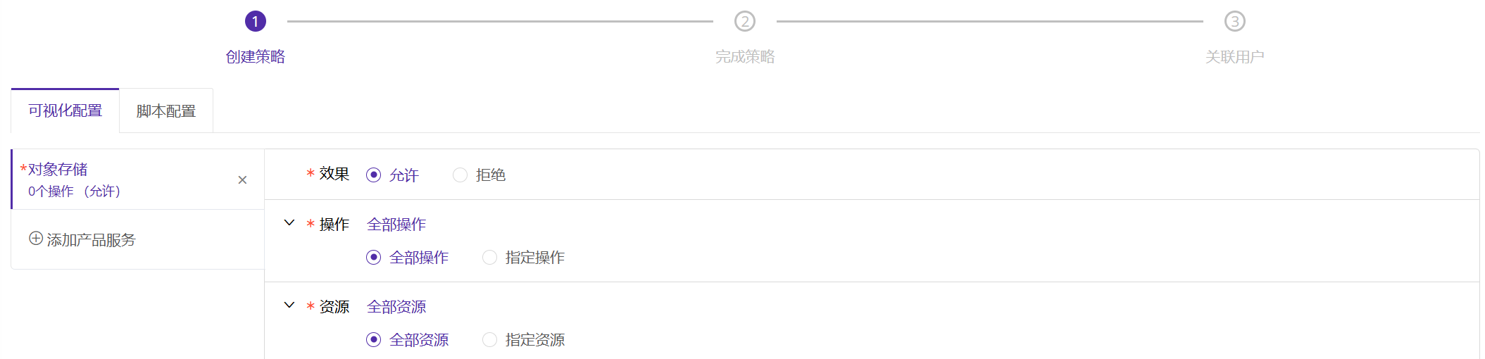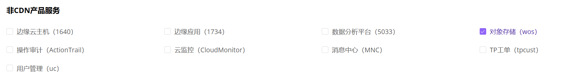 选择可视化配置,在非CDN产品服务下选择对象存储(wos),然后点击下一步。