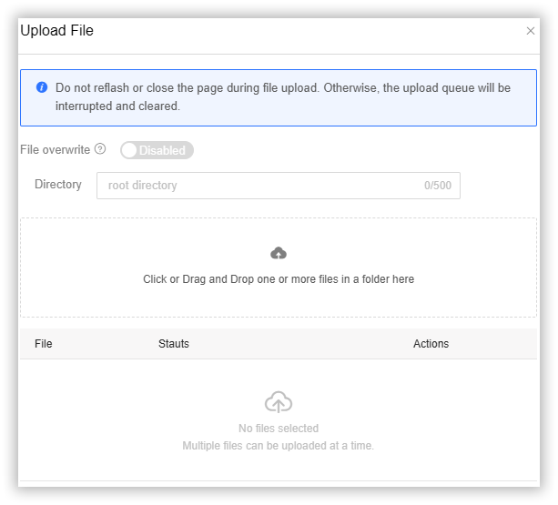 您可以自己设置根目录,以便于文件访问和管理。在此处输入目录名称后,上传的文件将自动存储在对应的目录下,该目录也会作为新的文件夹被创建。