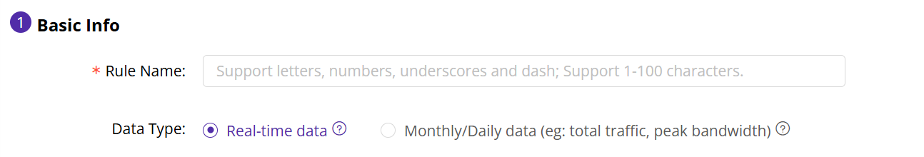 - Monthly/Daily data: Used to calculate and monitor aggregated data over a specific period (e.g., total traffic, peak bandwidth). This is primarily used for cost accounting, capacity planning, and other billing and operational analysis scenarios.