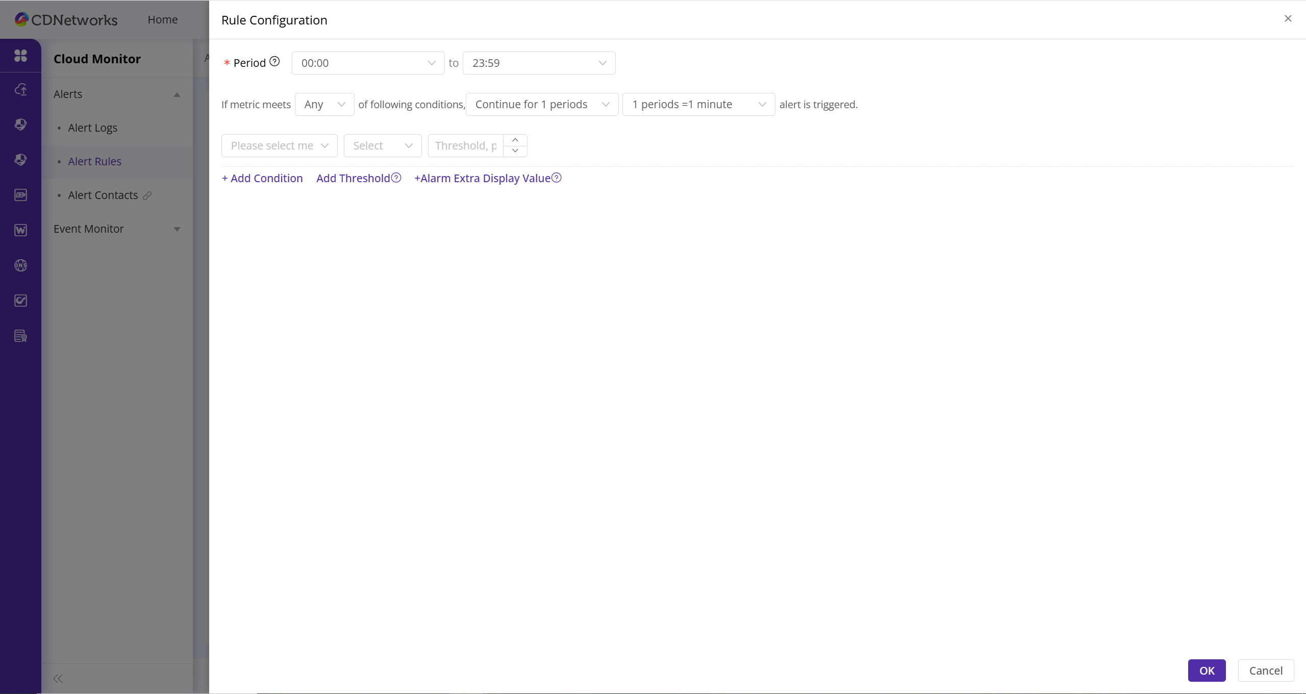 Before creating alert rules, please ensure you have configured the Contacts and Contact Groups that will receive alert notifications in [Alert Contacts].