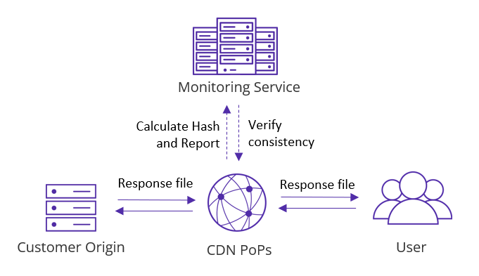 - If the hashes are consistent, the monitoring system returns a successful result to the CDN server, which can then deliver the file to the user.