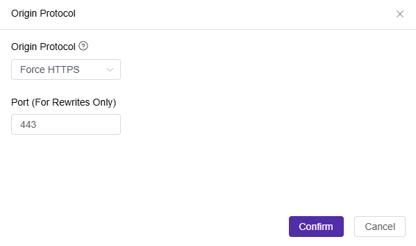 | Port (For Rewrites Only) | Designates the port number for CDN back-to-origin traffic | - Default ports are 80 (HTTP) and 443 (HTTPS). You can customize ports as needed. - The back-to-origin port setting is only applicable to requests matching the rewrite rule. Requests not meeting the rule will default to the port specified in Alternate Back-to-Origin> in settings. - For instance, configuring HTTP->HTTPS with a specified back-to-origin port of 443 means all HTTP requests will revert to the origin using port 443, while HTTPS requests will revert using the port set in Replace Back-to-Origin. |