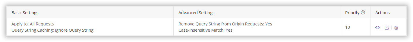 After configuring the Apply to, you can configure whether the query string in the URL should be part of the CDN servers’ caching and response criteria. The CDNetworks CDN platform provides three options: