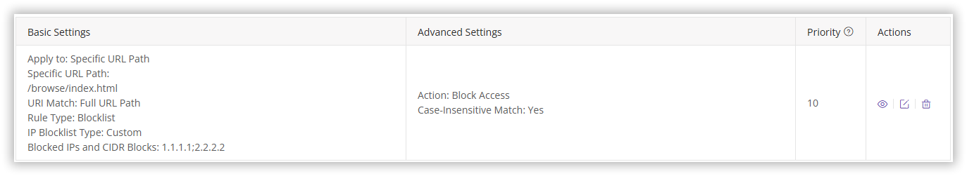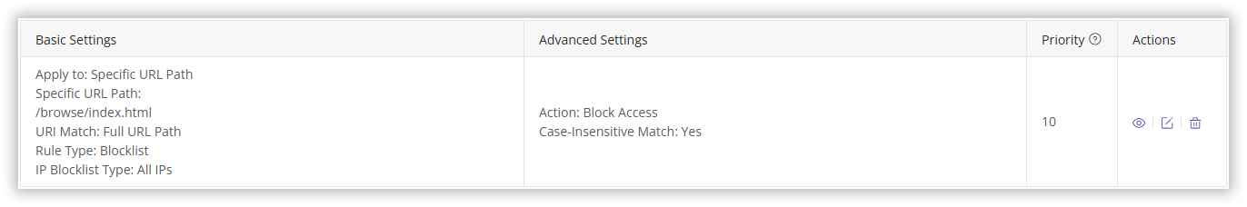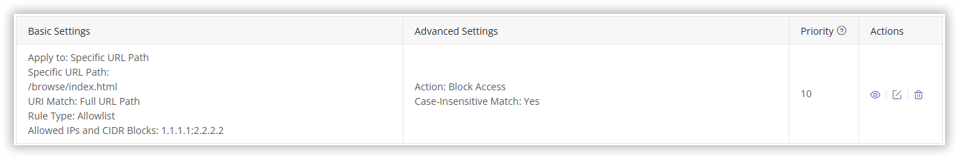 When multiple access control rules are configured, the CDN prioritizes them based on their numerical value, executing higher numbers first.
