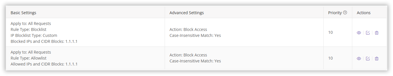 1.1.1.1, it matches the IP blocklist rules and is denied by the CDN.1.1.1.1) and are also denied.If you need to configure both a blocklist and an allowlist, please contact our technical support for assistance to ensure proper setup.