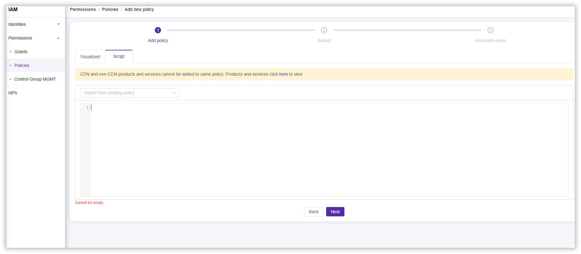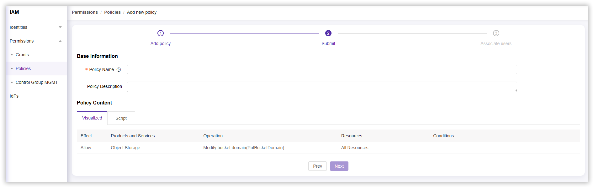 After creating a new custom policy, you can authorize the custom policy to specified users.