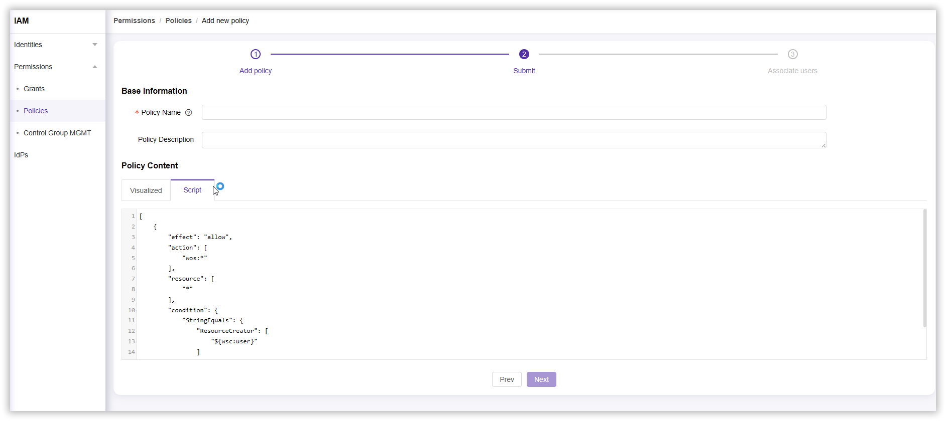 A custom policy is a user-defined permission control policy used for more refined management of resource access permissions in the Identity and Access Management (IAM) system. Unlike system-defined policies, custom policies allow users to set permission rules according to specific business needs.