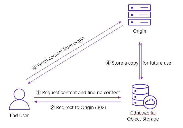 When the object storage platform receives the first access request for a resource, it automatically retrieves the resource from the configured mirror source through back-to-origin pulling and stores it persistently on the platform. Subsequently, all future access requests for that resource will be served directly by the object storage platform without requiring additional back-to-origin requests, effectively reducing the load on the origin server.