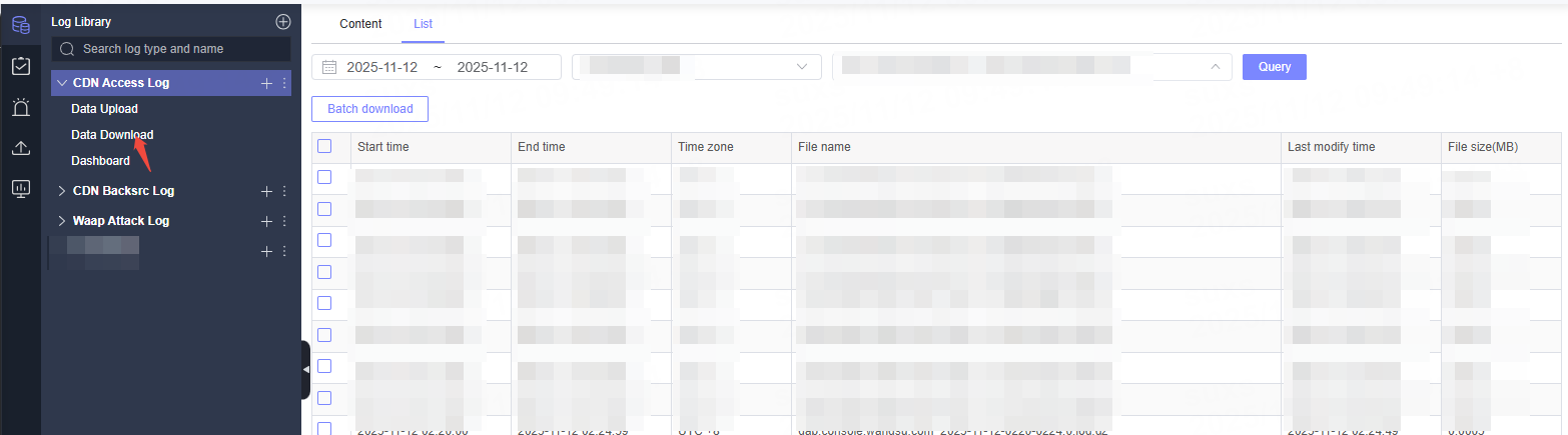 When you need to obtain specific business logs for analysis, you can use the Data Download feature.