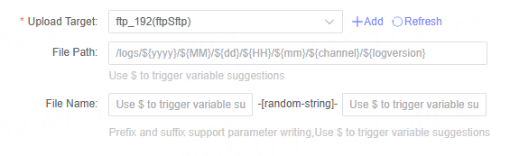 Depending on the type of log, you can specify the corresponding file path and file name when configuring the upload task.